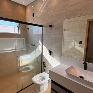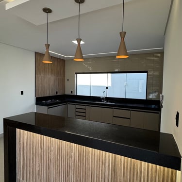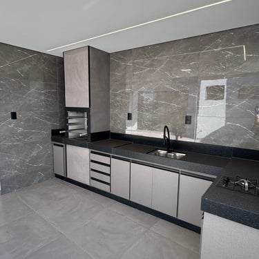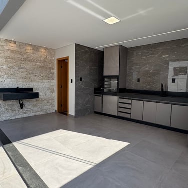 Casa Térrea , toda Planejada e com Acabamento de Altíssimo Padrão , com 4 Quartos (2 Suíte 1 com closet ) sala integrada com jantar e cozinha planejada, 2 lavabos, área Gourmet Completa e planejada , despensa.