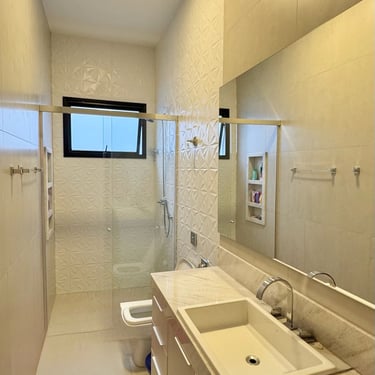 Casa Térrea, com 4 Quartos ( 1 Suíte com Closet) toda Planejada e Decorada. Sala ampla , jantar e cozinha planejada, área Gourmet completa com lavabo, dispensa, lavanderia grande, e escritório. Garagem para 3 Carros. 285 m²