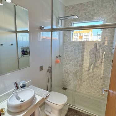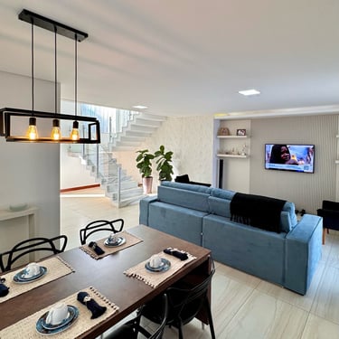 Casa 2 Pavimentos com 3 Quartos ( 1 Suíte com armários planejados) sala integrada com jantar e cozinha. 2 Lavabos, área Gourmet Completa. Piscina , Sauna, Lavanderia , despensa.
